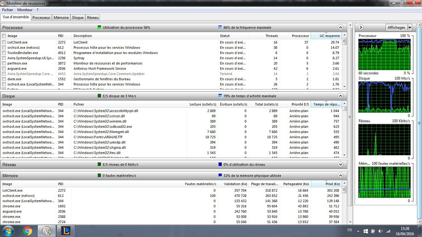 2- Jouer à League of legend et repérer les ou les processus prenant les ressources du PC...