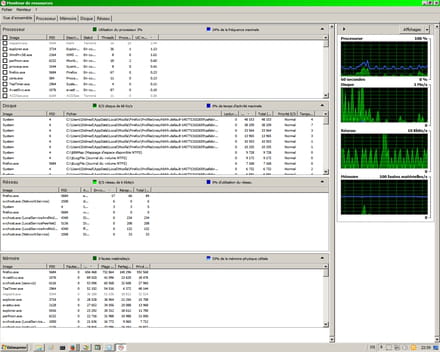 1- ouvrir le Gestionnaire de tâches > onglet Performances > en bas, ouvrir Moniteur de ressources
