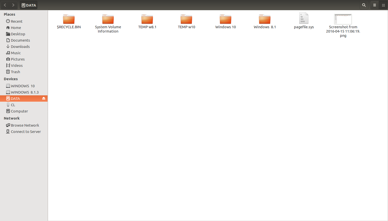 mon deuxième DD dans mon pc, pour les données, on voit bien tous les dossiers présent comme sous Windows.