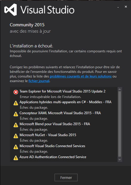 - Visual Studio ne s'installe pas