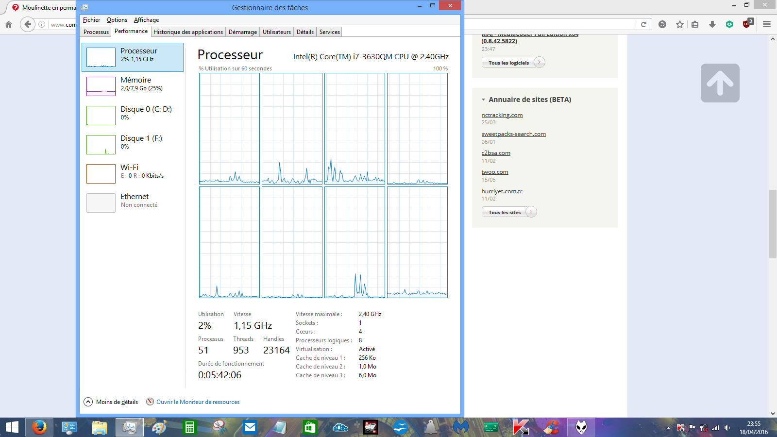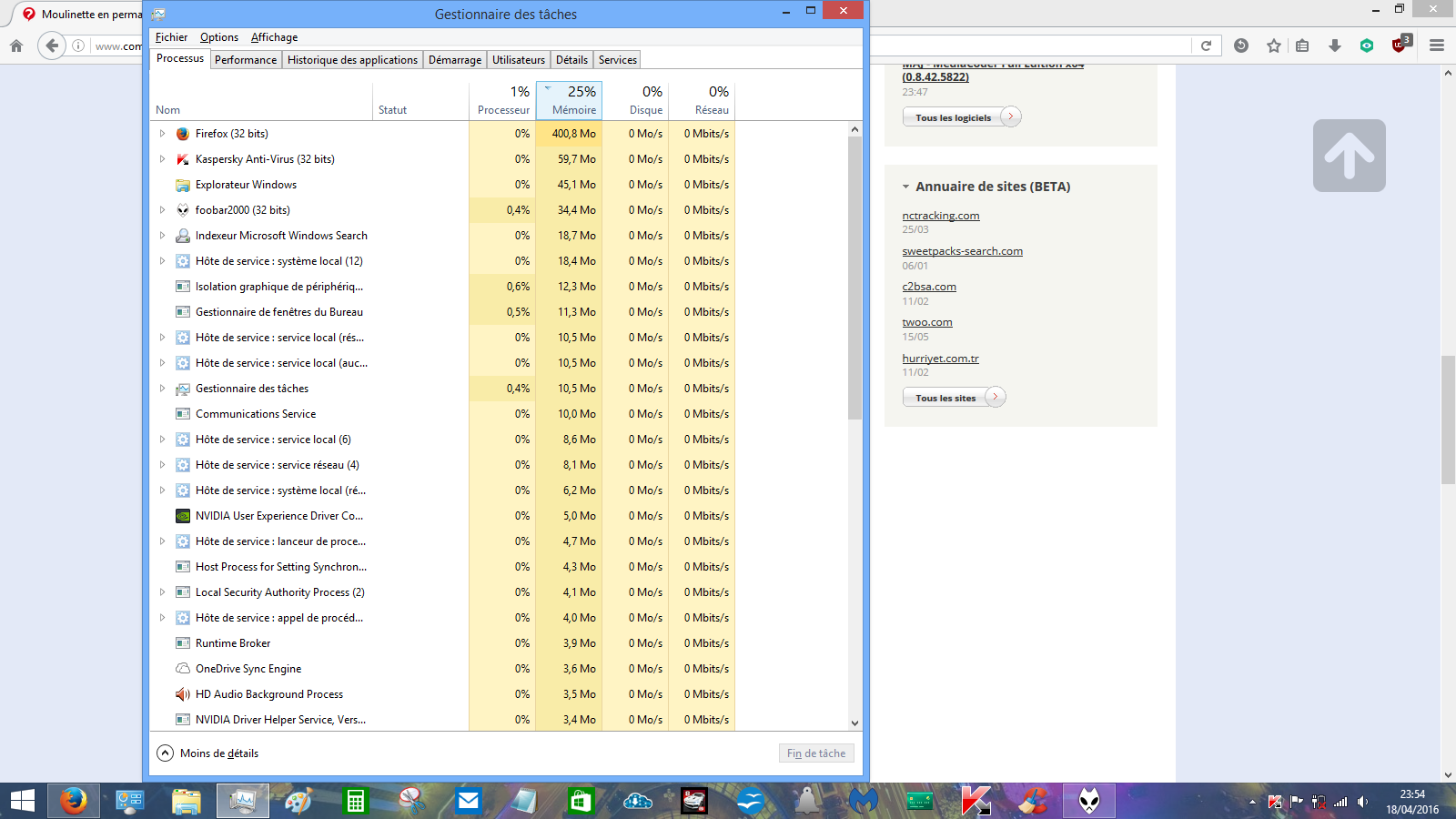 et 323 Mo pour Firefox, ce qui fait 61% d'utilisé, avec le processeur à 20%, pas étonnant que le pc mouline dans la choucroute..
