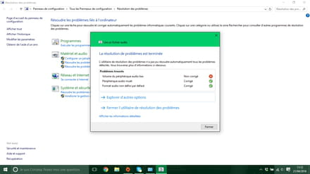 Es tu allé dans tous les paramètres de Windows pour régler le son comme dans Panneau de configuration\Tous les Panneaux de configuration\Son