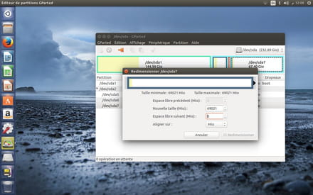 Sans certitude, je ne crois pas que gparted est capable de réduire la partition racine quand elle est montée. Fais cette meme manipulation en utilisant le live-cd.