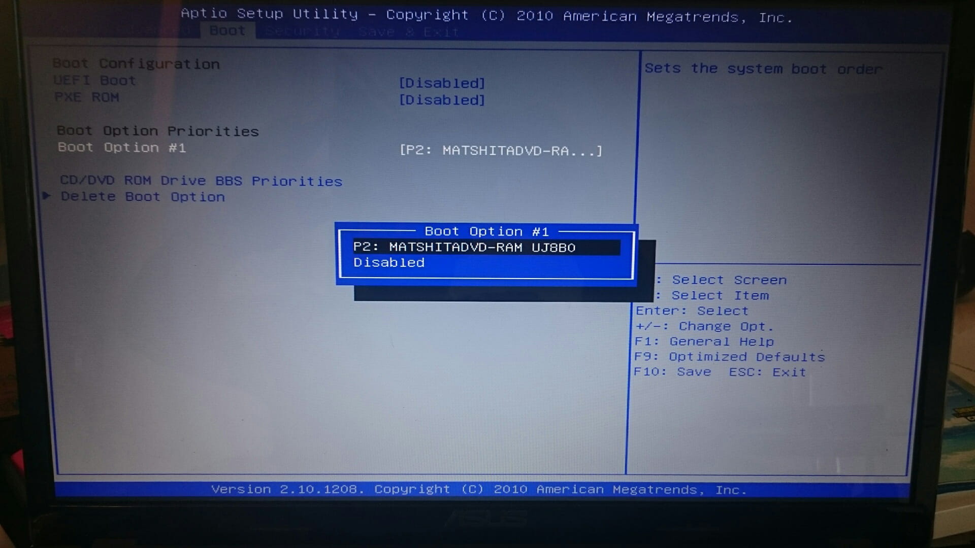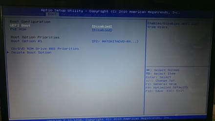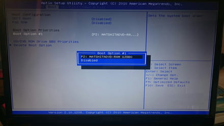 (Si le menu n'apparait pas, cliquer sur Boot Option 1 et me dire ce qu'il y'a dans la liste)