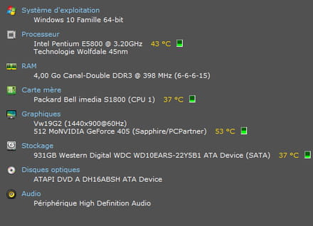 Quant au processeur, il ne semble pas chauffer outre mesure, il oscille entre 40° et 50° en utilisation simple.
