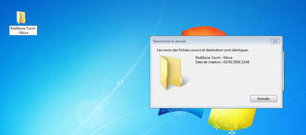 J'ai donc cliqué sur "Annuler". J'ai ensuite tenté de le renommer pour qu'il ne soit pas identique. Mais il m'est impossible de le renommer sinon ça m'affiche ça:
