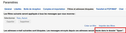 - Elimination d'un courriel, meme en Spams