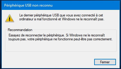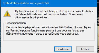 - Crete d'alimentation sur le port usb / dysfonctionnement d'un