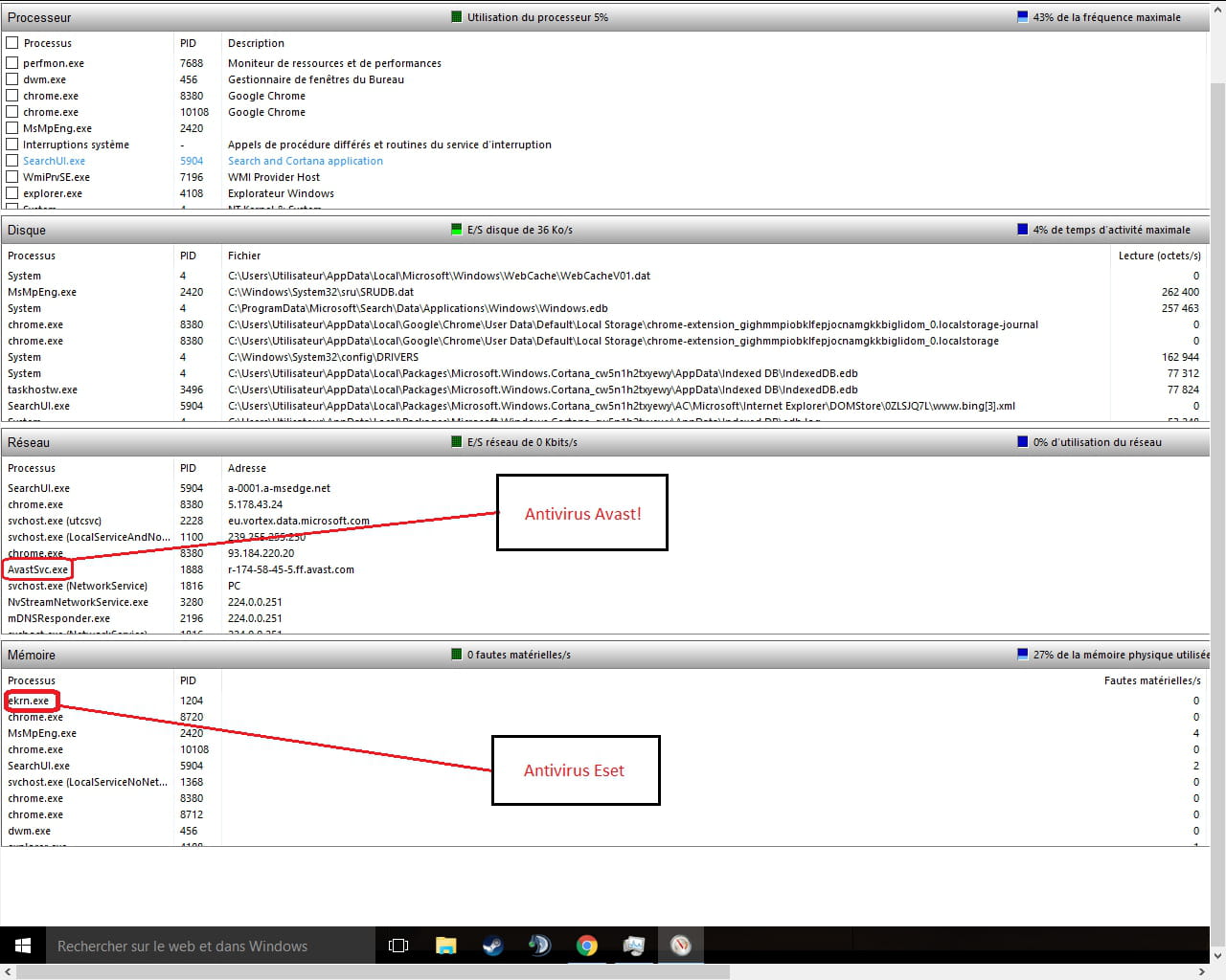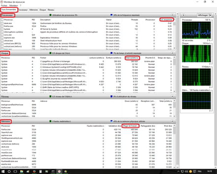 Essaies d'utiliser le Moniteur de ressources de Win10: