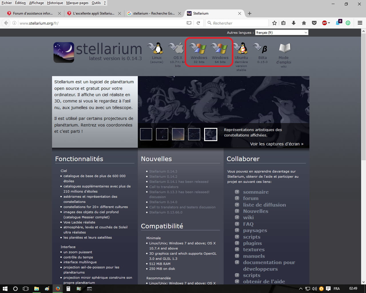 Je viens d'installer Stellarium (stellarium-0.14.3-win64.exe) > aucun souci