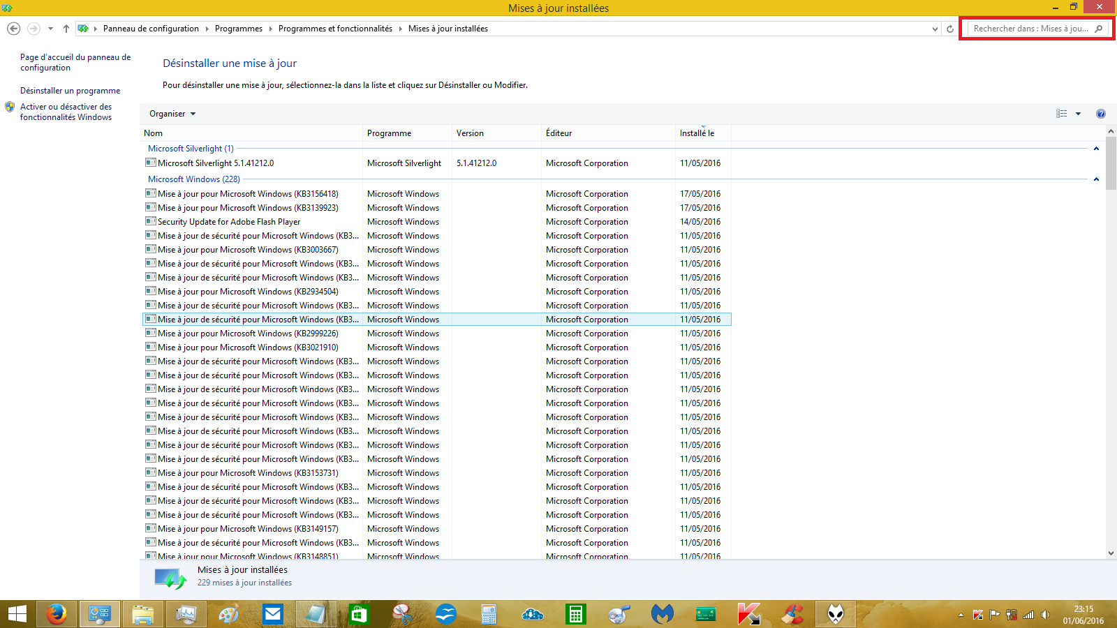 Je suis allée vérifier dans mises à jour installées en tapant le numéro du KB et elle n'y est pas...