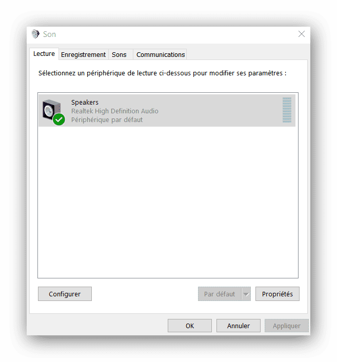 A force de chercher je me rends comptes que mon ordinateur lit les sons (quand je fais panneaux de configutation->son et que je mets une vidéo je vois la barre de son monter et descendre) par contre aucun son ne sort par les enceintes ou le casque. Mais, toujours dans la partie son, quand je teste le périphérique de communication par défaut là j'ai du son.