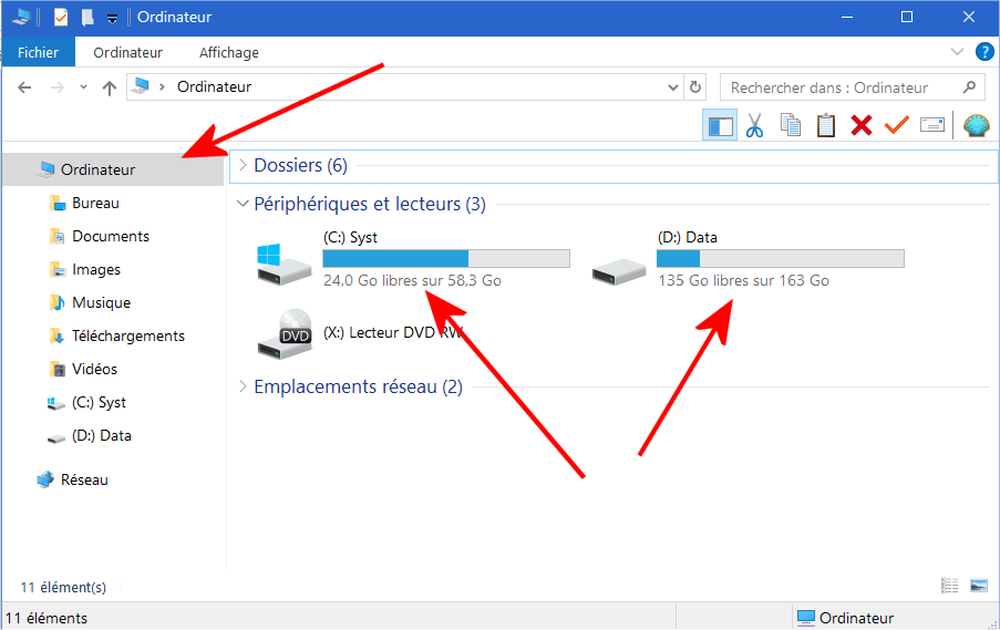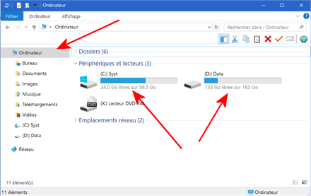 Bonjour, comment connaître l'espace de stockage sur un ordinateur? Et du coup comment on sait quand l'espace devient saturé?