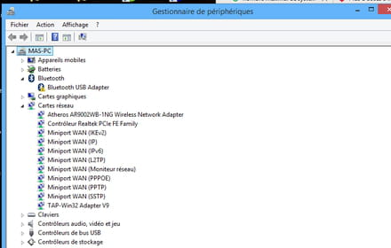 Salut je dirai que c'est un probleme de pilote. Sur la photo que j'ai mis, regarde mon pilote bluetooth il y a une sorte d'indice jaune sur le pilote cela veu dire qu'il y a un probleme mai par contre touts les pilotes de mes carte reseau sont nikel. Verifi donc tes pilotes ou bien tu fai une capture d'ecran quand ton gestionnaire de peripherique est a l'ecran(apuyer bouton windows+X et ensuite choisir gestionnaire de peripherique). Si c;est pas les pilotes et que tu peut atteindre ta carte reseau tu la retire et tu la remet(il peut arriver quel ai bouger mai c'est peut probable)