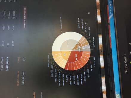 si vous ne le voyez pas j'essaye de créer un graphique circulaire a 2 étage. Où le milieu serait ,par exemple, la répartition du portefeuille dans les divers marchés,et par la suite autours de ces informations j'aimerai voir la composition (en %) dans chaque marché. exemple : nasqaq 33%; 20% aapl et 13% googl.