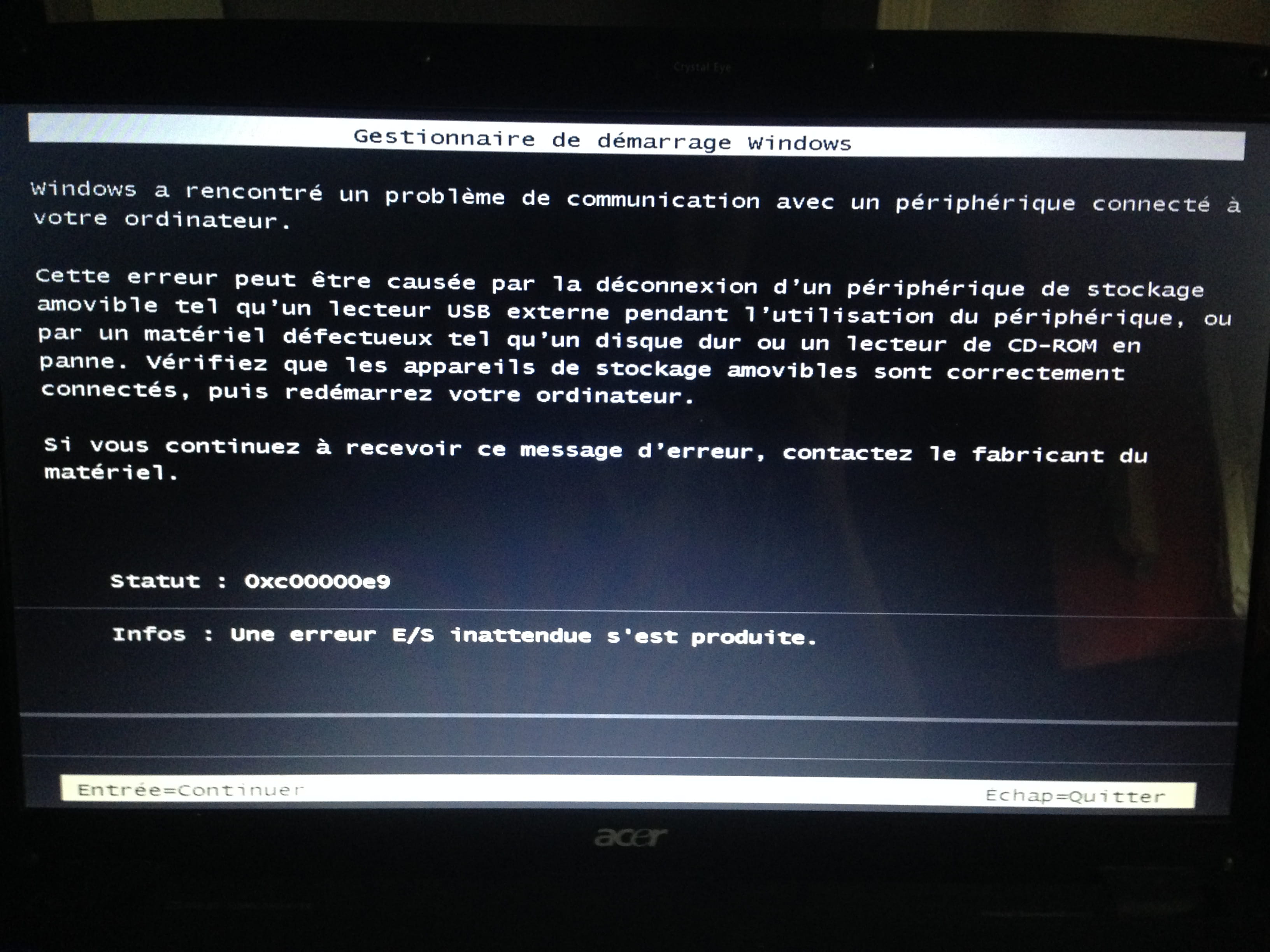 Erreur E/S j'imaginé que le disque dur est illisible,