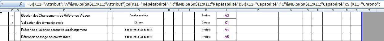 Exemple : Si ma colonne contient le mot "attribut" et que c'est la 1ere ligne à la contenir, je retrouve dans ma 2e colonne : A1.