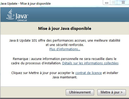 - Mise a jour java