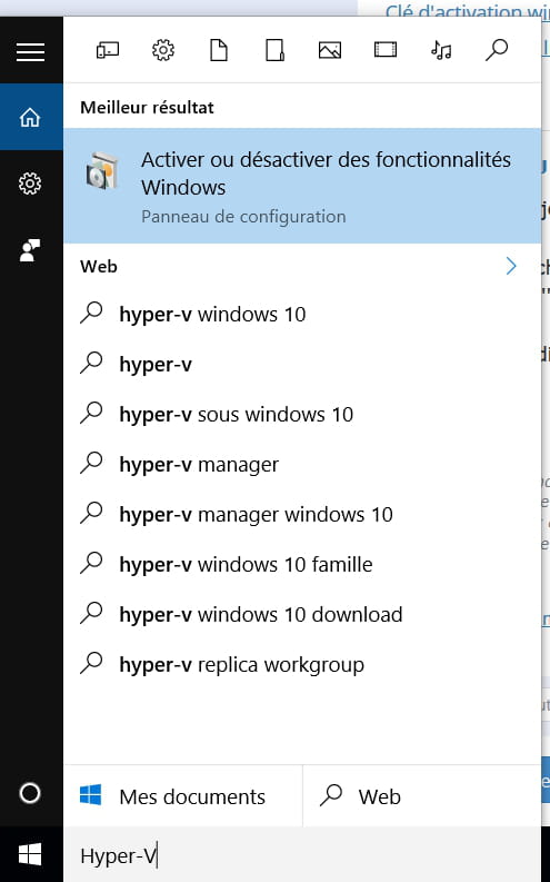 Je souhaiterais savoir comment avoir accès à Hyper-V dans Windows 10 pro 64 bits. Je l'ai activé dans "Programmes et Fonctionnalités", Le Pc à redémarrer après cette manipulation. J'ai essayé les différentes commandes dispos sur internet dans Powershell mais rien n'y fait ... J'ai recherché Hyper-V dans le Pc ; J'ai les fichiers ressources ("amd 64 Hyper-v-v") mais pas le fichier pour lancer/exécuter Le Fameux Gestionnaire ...