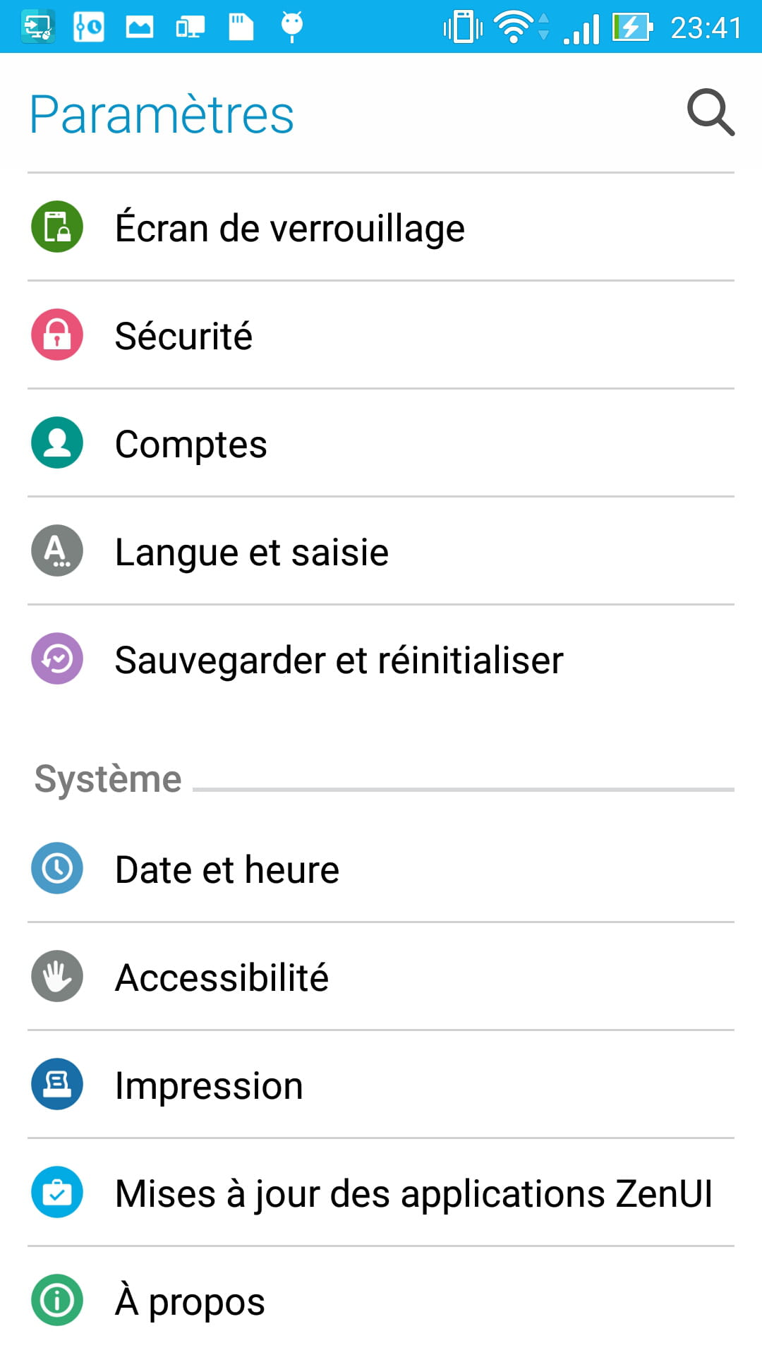J'ai eu, il y a peu, un nouveau téléphone (Asus Zenfone 2 Ze551ml). Et quand je vais dans les paramètres pour chercher la mise à jour système, je ne vois aucun paramétrage pour :