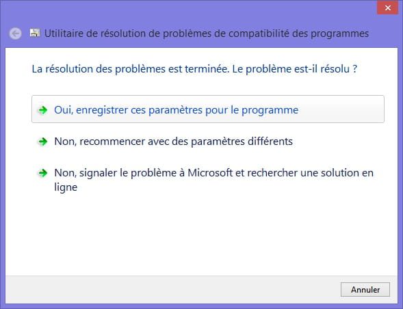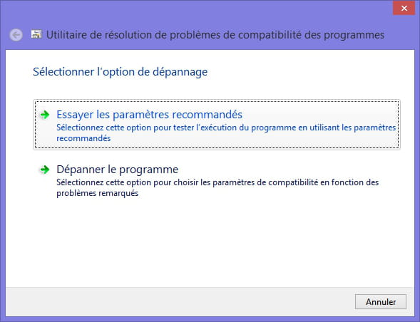 Après vous aller dans Compatibilité > Lancer la résolution des problème de compatibilité, vous aller avoir une fenetre de se genre la: