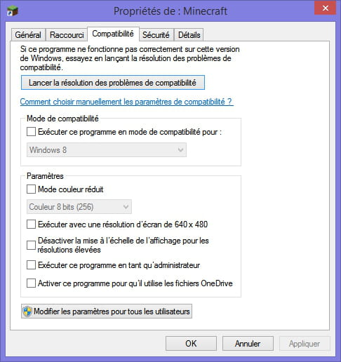 Alors pour commencer vous aller cliquer sur l'icone Minecraft > click droit > Propriétés, vous aller tomber normalement ici: