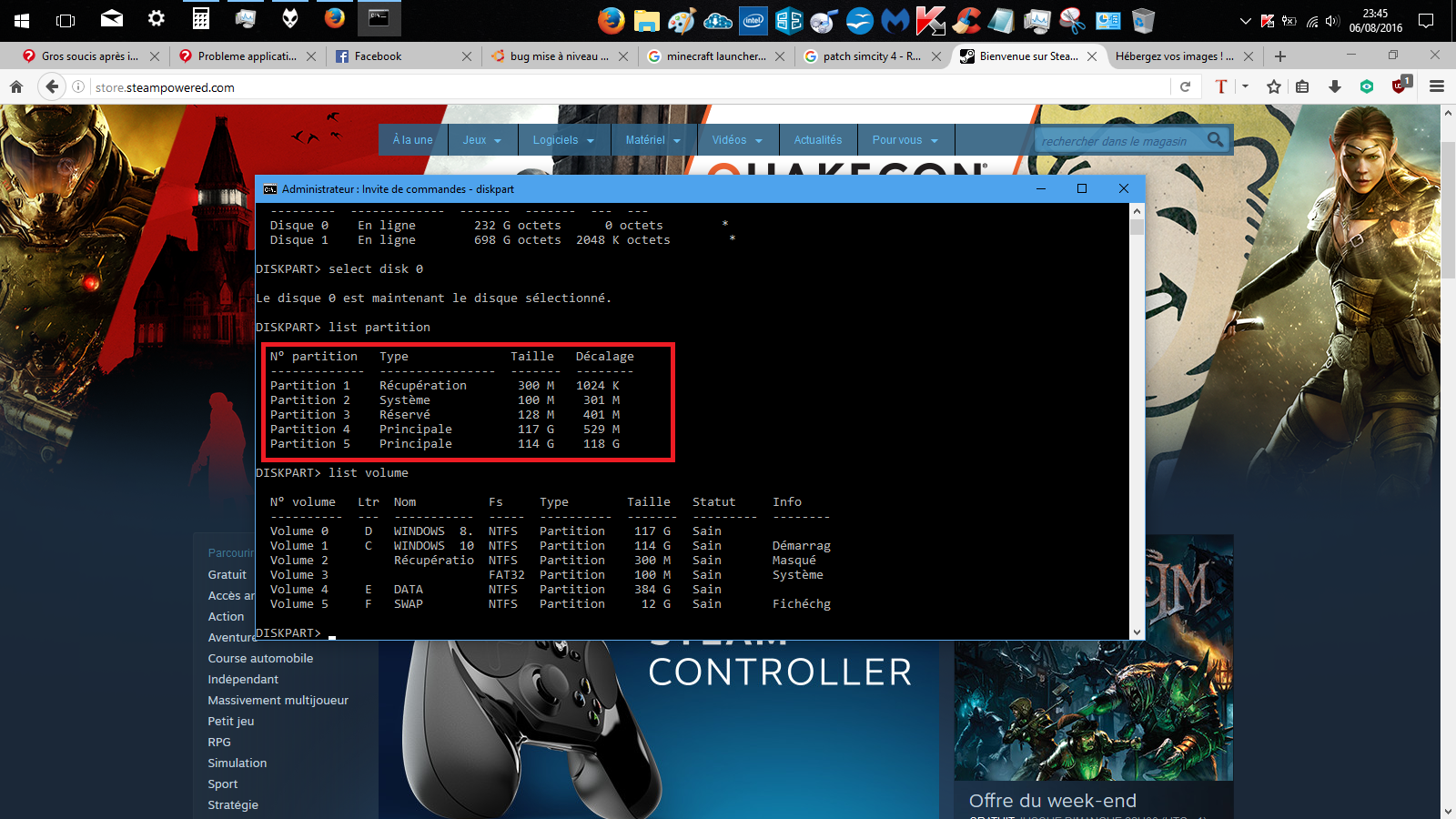moi et mon frère sommes confrontés à de gros soucis venant du système d'exploitation windows 10. Nous avons installé la mise à jour 1607 hier et rencontrons actuellement de gros soucis ! Premièrement, le système ne démarre que lentement. Lors de l'ouverture de la session, la barre démarrer fait des siennes, et il est presque impossible d'ouvrir le bouton démarrer. La fenêtre de notifications est inaccessible ! Il est également impossible d'ouvrir les navigateurs internet Micrisoft Edge ou Internet Explorer. Je ne pourrais pas dire si les autres fonctionnent puisque nous n'en avons aucun d'installés. La commanďe ctrl + alt + suppr ne fonctionne pas et ne donne qu'un simple écran noir, heureusement que le bouton Echap nous ramène sur le bureau ! Il y a également un problème au niveau des boîtes de dialogues avant l'exécution d'un programme. L'écran baisse en luminosité, mais la boîte de dialogue n'apparaît pas et donc impossible de lancer le programme ! Le seul moyen que j'ai trouvé de quitter cet écran est de faire ctrl alt suppr afin d'obtenir un écran noir et d'appuyer sur Echap pour retourner sur le bureau. J'avais également des problèmes au niveau de l'arrêt de l'ordinateur, qui fermait Windows, j'obtenais ainsi un écran noir mais l'ordinateur restait toujours sous tension, me forçant à maintenant enfoncé le bouton d'alimentation afin de le mettre hors tension. Je ne peux pas accéder à l'application paramètres et j'ai tenté une recherche des problèmes de mise à niveau avec l'utilitaire de Windows Update, qui me trouve une "erreur" dans les bases de registre de Windows Update et qui me propose de corriger le problème en réinstallant les fichiers. Après "correction" de ces problèmes, aucune amélioration et si je relance l'analyse, l'utilitaire répète ces mêmes réparations indéfiniment. Voilà, je rencontre de nombreux soucis mais ne trouve absolument aucune aide, je suis navré si mes explications ne sont pas vraiment claires mais j'essaye de faire vite et j'écris les éléments qui me passent par la tête. Je suis actuellement avec mon portable ce qui est un peu compliqué ! :) Si vous prenez le temps de lire mon paragraphe, je vous en serais extrêmement reconnaissant... Merci de l'aide que vous pourriez m'apporter !