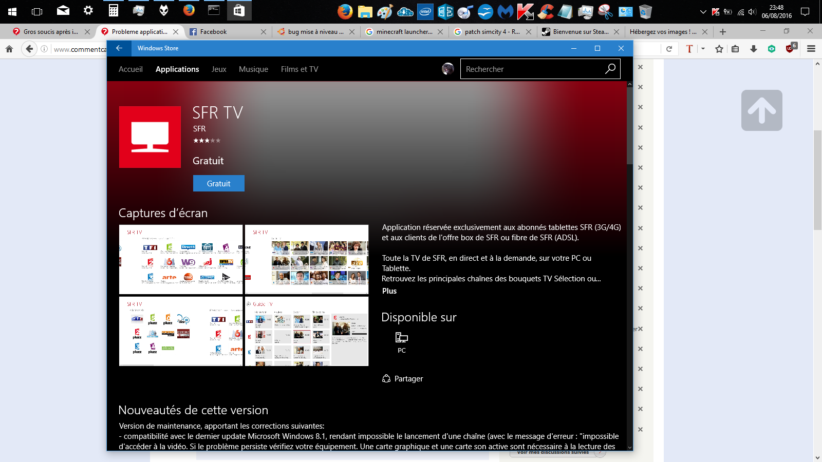 J'ai une application (SFR TV) pris sur le windows store qui est introuvable dans les applications mais demarable par le windows store et quand on l'epingle a la barre des taches elle a pas d'icone