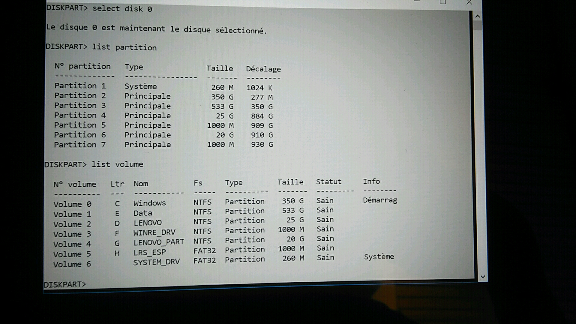 mais j'ai quand même l'impression qu'elles se sont multiplié ses partitions, ou alors Lenovo fournit un sacré bordel d'origine..