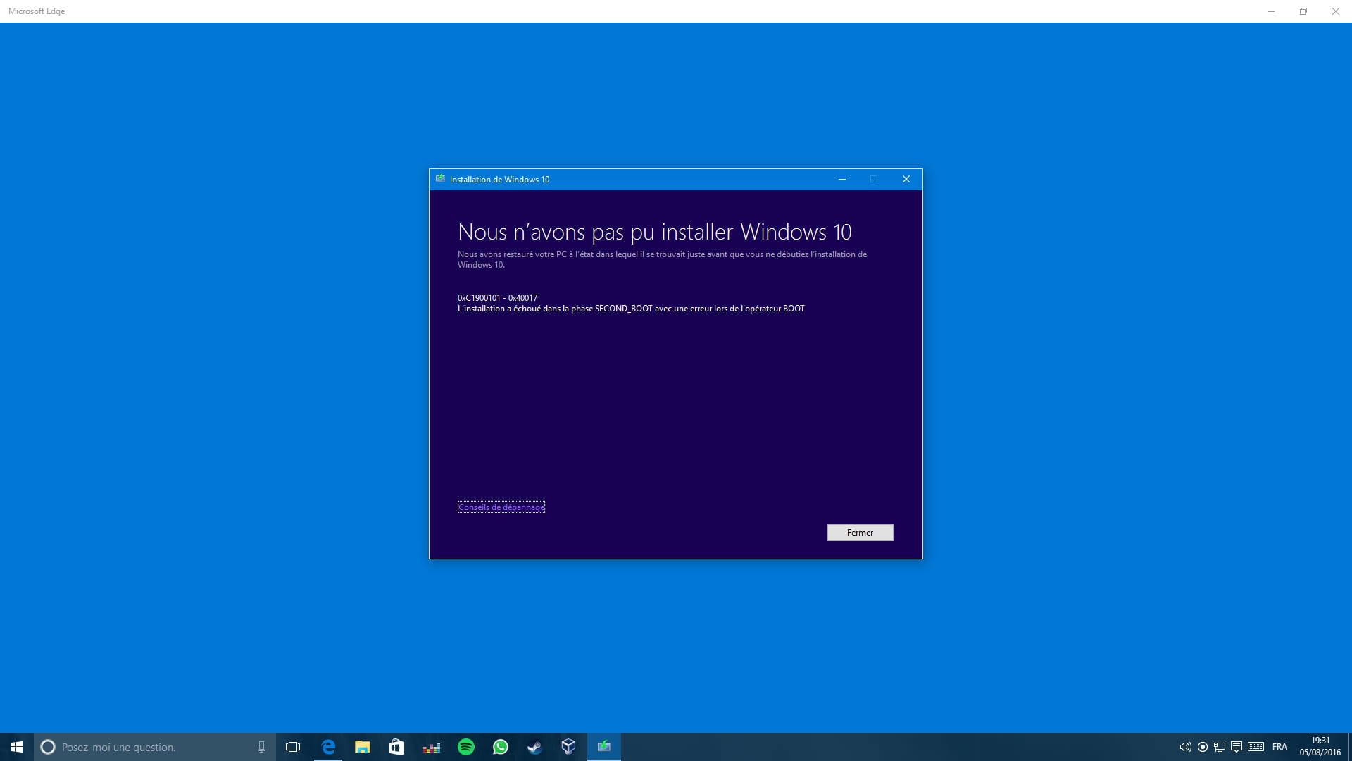 - Erreur mise à jour Windows 10 vers Windows 10 Redstone (1607)