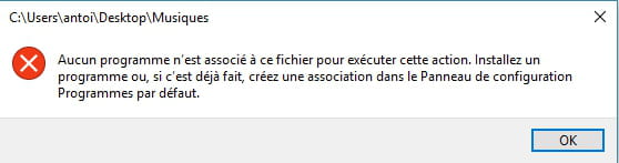 récemment j'ai voulu ouvrir un fichier (file folder), le truc c'est que un message d'erreur apparaît. (ci-dessous)