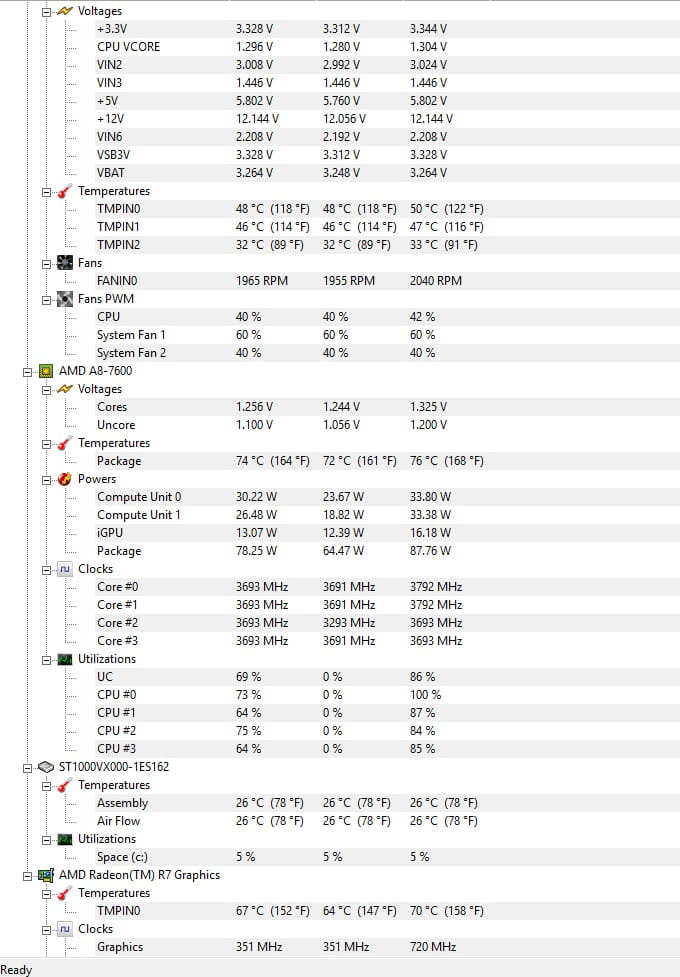 Par l’ailleurs j'ai remarqué que le processeur surchauffait anormalement alors qu'une utilisation internet seul a eu lieu. (min 71°C max 76°C) je vous laisser juger par vous même en essayant d'envoyer une photo des températures.