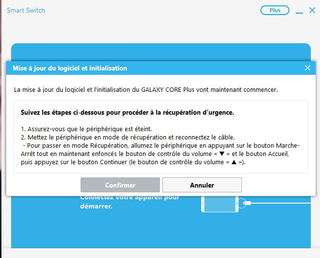 SM-G350 Qu'elle est la manip a effectuer sur smart switch j'ai acces au mode download mais pas au mode recovery
