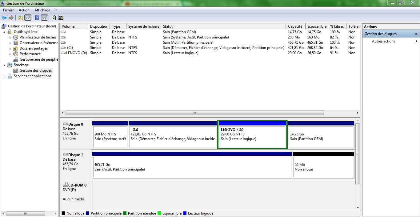 Dans gestion des disque, dans la colone "volume" mon disque n'a pas de nom, de lettre et il est impossible de le renommer .