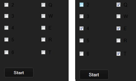 J'ai déjà commencé avec les touches 2/3/4 mais le problème c'est que même si je ne coche pas les checkbox ils se mettent à spammer.