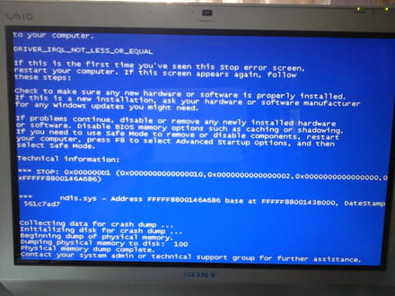 Les problèmes persistent sous une autre forme !! Cette fois mon ordi affiche un écran bleu assorti d'un texte en langue anglaise et d'un bruitage intempestif.
