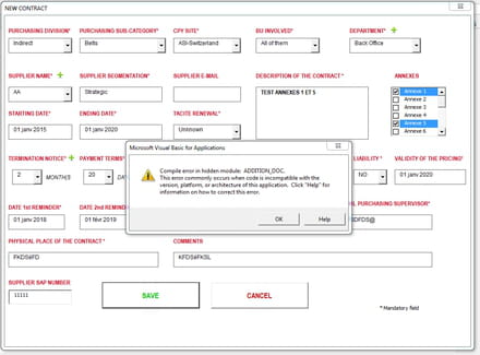 Ainsi, si lorsque j'ajoute un nouveau contrat, avec date de début : 01/02/2017 (format Français), il me la transforme en 02/01/2017 (format Anglais), mon fichier n'a plus aucun intérêt, car il ne restitue pas correctement l'information qui a été enregistrée initialement.