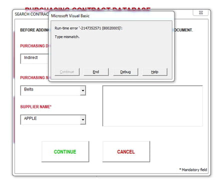 Je fais face au problème suivant avec un formulaire sous VBA.