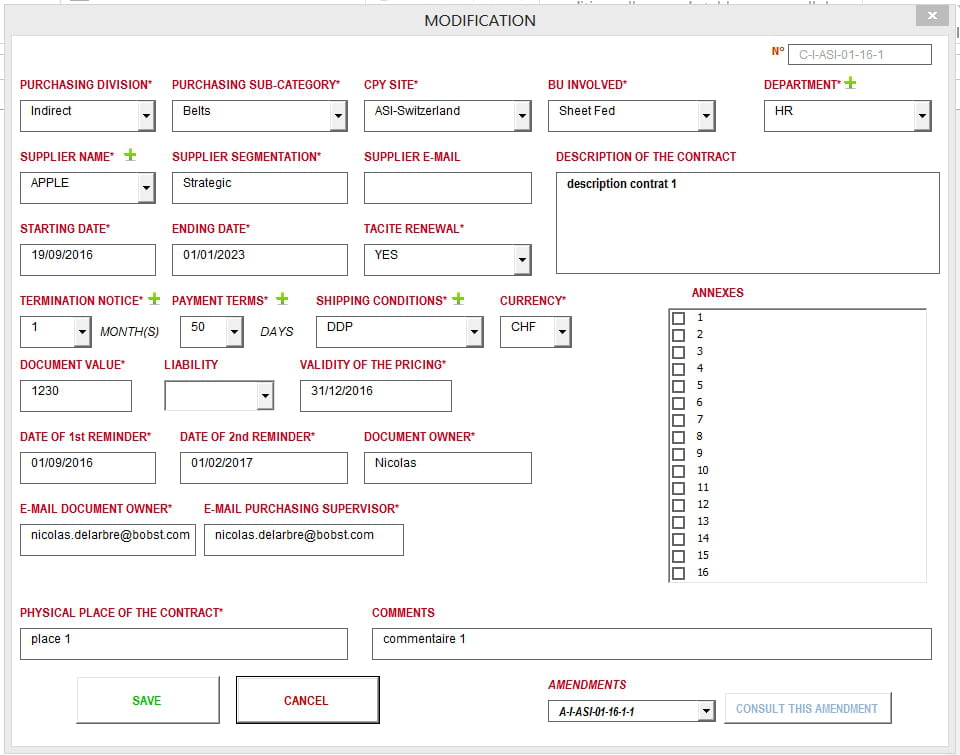 Si, j'en ai modifie 2, un contrat et un amendment du meme contrat (ligne 2 et 3 legals....)