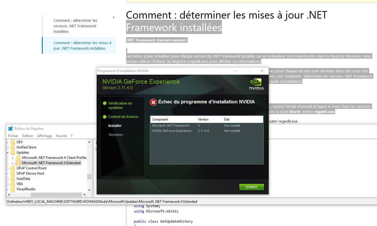 Mon problème et le suivant, j'ai télécharger la dernière version de NVIDIA Gf E mais lors de l’installation il me dit que Framework 4 n'ai pas installé bizarre car suite a plusieurs vérification j'ai bien les dernière version avez vous une idée sil vous plait?