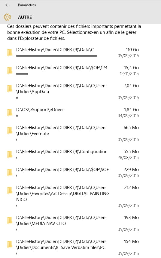 J'ai omis de vous préciser que j'ai sur chaque disque D: et externe F: une sauvegarde sans doute exploitable, mais comme W 10 ne reconnait pas ces