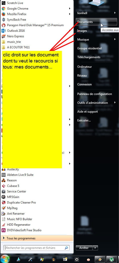 bonsoir, j'ai quelques problèmes ce soir avec mon bureau, tout avait disparu sauf la corbeille, j'ai arrêté l'ordi et redemarré tout est revenu sauf mes documents qui étaient un raccourci. Maintenant j'aimerai le remettre car je ne sais plus où aller chercher mes documents Merci de m'aider.
