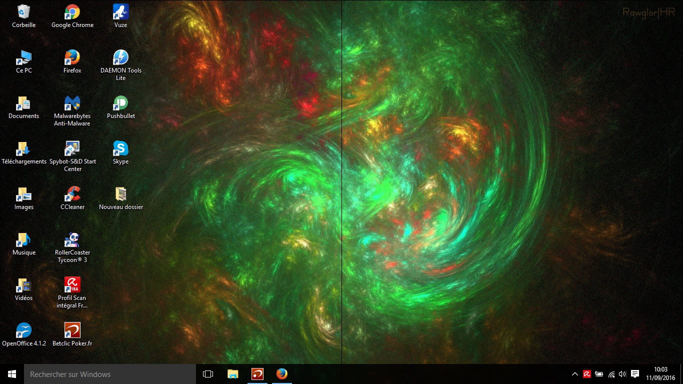 Bonjour tout le monde, j'ai un petit problème sur mon pc portable, pas bien grave mais bon, c'est quelque peu désagréable, j'ai une ligne verticale noire au centre de mon fond d'écran, et seulement sur le fond d'écran, il ne s'agit pas d'une ligne de morte, je suis sous windows 10, j'ai essayé de changer plusieurs fois de fond d'écran ou même de mettre une couleur unie, mais rien n'y fait, le problème persiste...