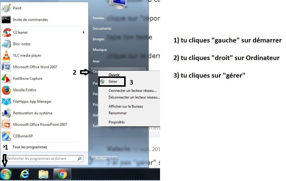 clique droit sur "ordinateur">"propriété>"gérer"