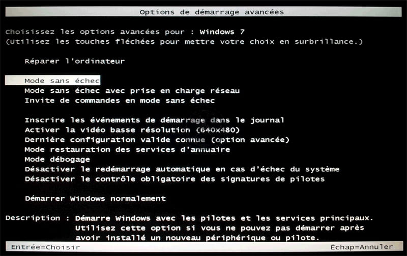 je suis sous windows 7. Je ne sais pas si j'ai redémarrer en mode sans échec comment puis-je savoir ?