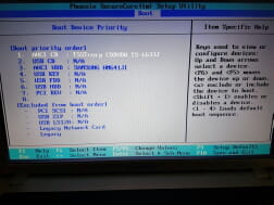 Je n'arrive pas à bien afficher tes photos, mais je dirai qu'il faut booter sur périphérique USB. Par contre il ne s'agit pas de copier simplement le fichier ISO sur ta clé. TU as quelques manip à faire pour que la clé soit bootable.