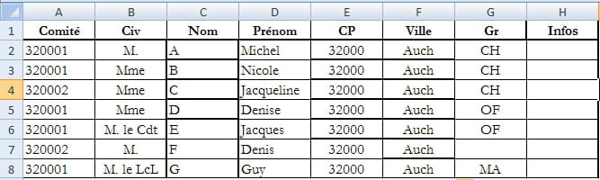 J'ai un fichier Excel de suivi des membres d'un comité avec: