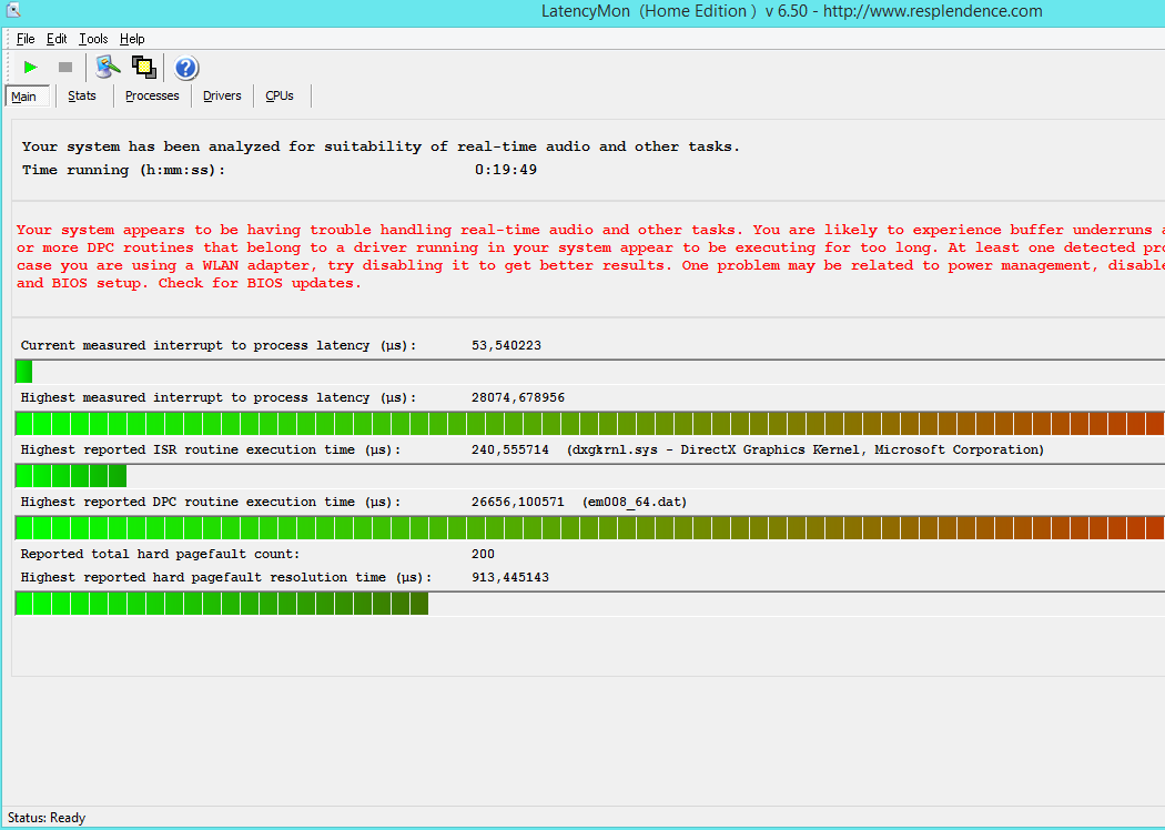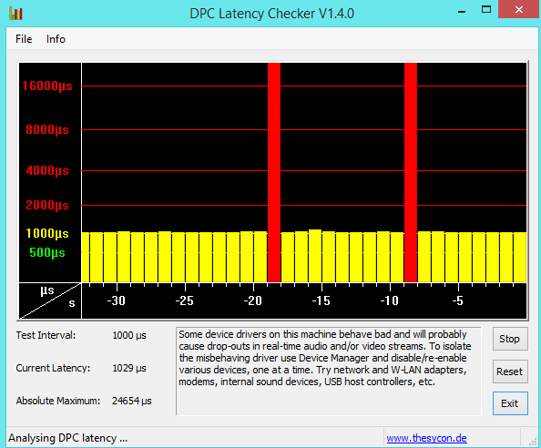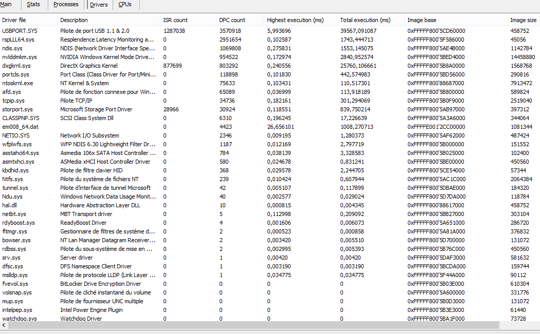 -DPC Latency qui n'est pas 100% compatible avec Win 8.1 mais qui me trouve des pics de latence lier a mon problème (Voir photo 1)