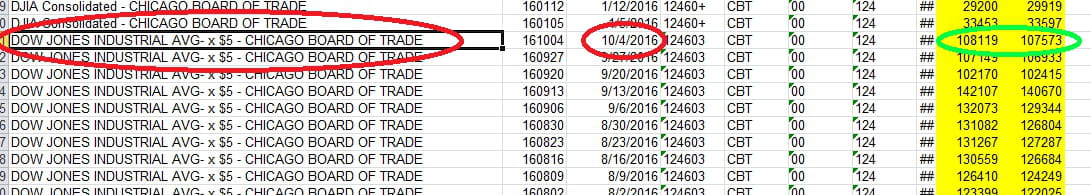 Avec la photo ca va etre bien plus clair, donc j'aimerais par exemple que Si la ligne comporte le nom "DOW JONES INDUSTRIAL AVG- x $5 - CHICAGO BOARD OF TRADE" ainsi qu'une date specifique (ici ce sera le 04/10/2016) alors on affiche la valeur U482 et V482 respectivement en B3 et C3...