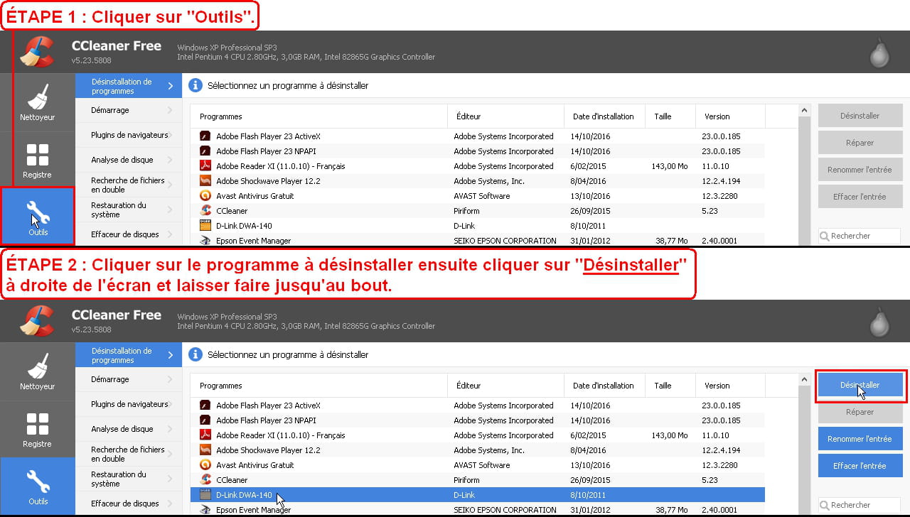 2) Nettoyage du registre avec Ccleaner :